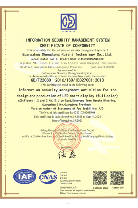 ISO27001中文證書