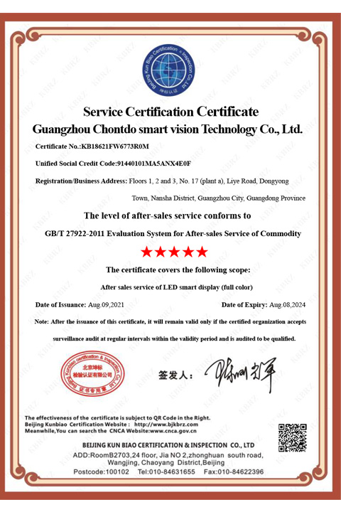 廣州澄通睿視科技有限公司FW服務認證中文證書
